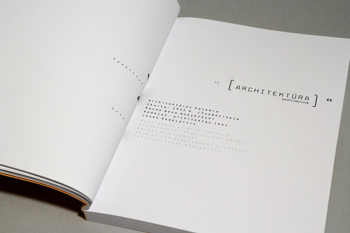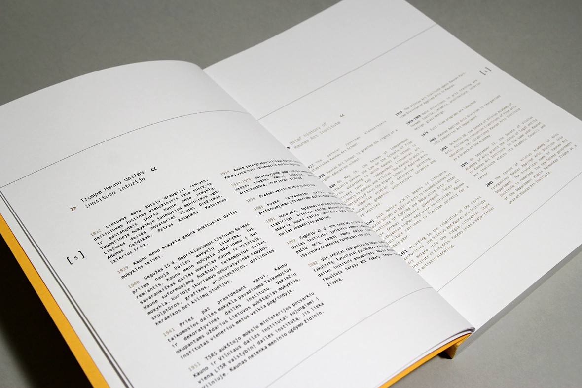 2003 – čiais baigiau Kauno dailės instituto (KDI) bakalaurą. Ši knyga yra mano baigiasis darbas. Tų laikų akimis maketas atrodė labai moderniai, sulaukė gausių ovacijų ir pelnė pagyrimo raštą. Knyga yra apie Kauno dailės instituto studijas. Tekstai paimti iš tuo metu veikusios KDI internetinės svetainės ir bukletų. Nuotraukas dariau pati. Vaikščiojau po studentų kabinetus, dirbtuves, fiksavau KDI kasdienes veiklas. Juosteles ryškinau foto studijoje, o pačias nuotraukas dariau pati raudonos lempos apšvietime, su ryškalais ir fiksažais pašonėje. Knyga išleista tik 1 egzemplioriu. Ji spausdinta skaitmeniniu būdu KTU spaustuvėje, ten pat klijuotiniu būdu sutvirtinta. Labai gerai prisimenu kainą – 300 Lt. Tais laikais man, kai mėnesio stipendija gerai besimokantiems buvo šiek tiek virš 100 lt, tai buvo didžiuliai pinigai. Tačiau visų brangiausia šioje knygoje yra prisiminimai, užfiksuoti knygoje ir išlikę širdyje.