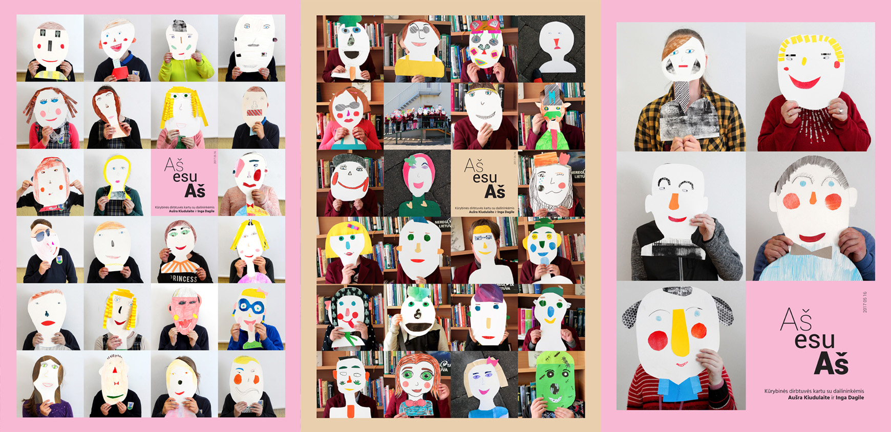 Kūrybinės dirbtuvės „Aš esu aš“, kurias vedėme kartu su Aušra Kiudulaite Raseinių ir Ariogalos bibliotekose. Jų metu su vaikais kalbėjomės apie autoportretus. Rodydamos vaizdinę medžiagą papasakojome autoportretų atsiradimo istoriją, autoportretų kaitą. Kas tai yra? Kaip atrodė pirmieji? Peržiūrėjome žymių ankstesniųjų ir šiuolainkinių menininkų autoportretus. Iešojom panašumų ir skirtumų, kalbėjome apie technikas. Kūrybinėje dalyje vaikai, naudodami didelio formato lapą ir koliažo techniką kūrė savo autoportretus, kuriuos pabaigoje nufotografavome ir apjungėme į vieną didelį kiekvienos grupės autoportretų plakatą.