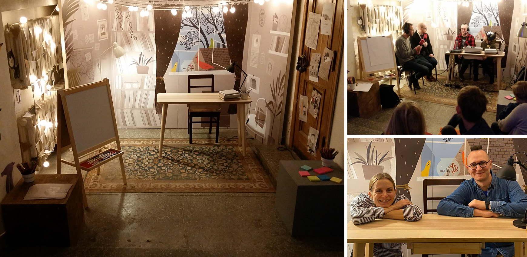 Festivalis „Vaikų knygų sala“ pakvietė mane sukurti festivaliui erdvę pagal knygą „Mano tėtis rašo knygą“. Taip gimė rašytojo kambarys, kuriame viso festivalio metu vaikai galėjo užeiti, pasėdėti prie rašytojo stalo, nusifotografuoti, išbandyti rašymo mašinėlę ar palikti žinutes ant sienos. Toje pačioje kambario erdvėje buvo transliuojama LRT radijo laida apie festivalį, bei kalbinamas Tomas Dirgėla.
