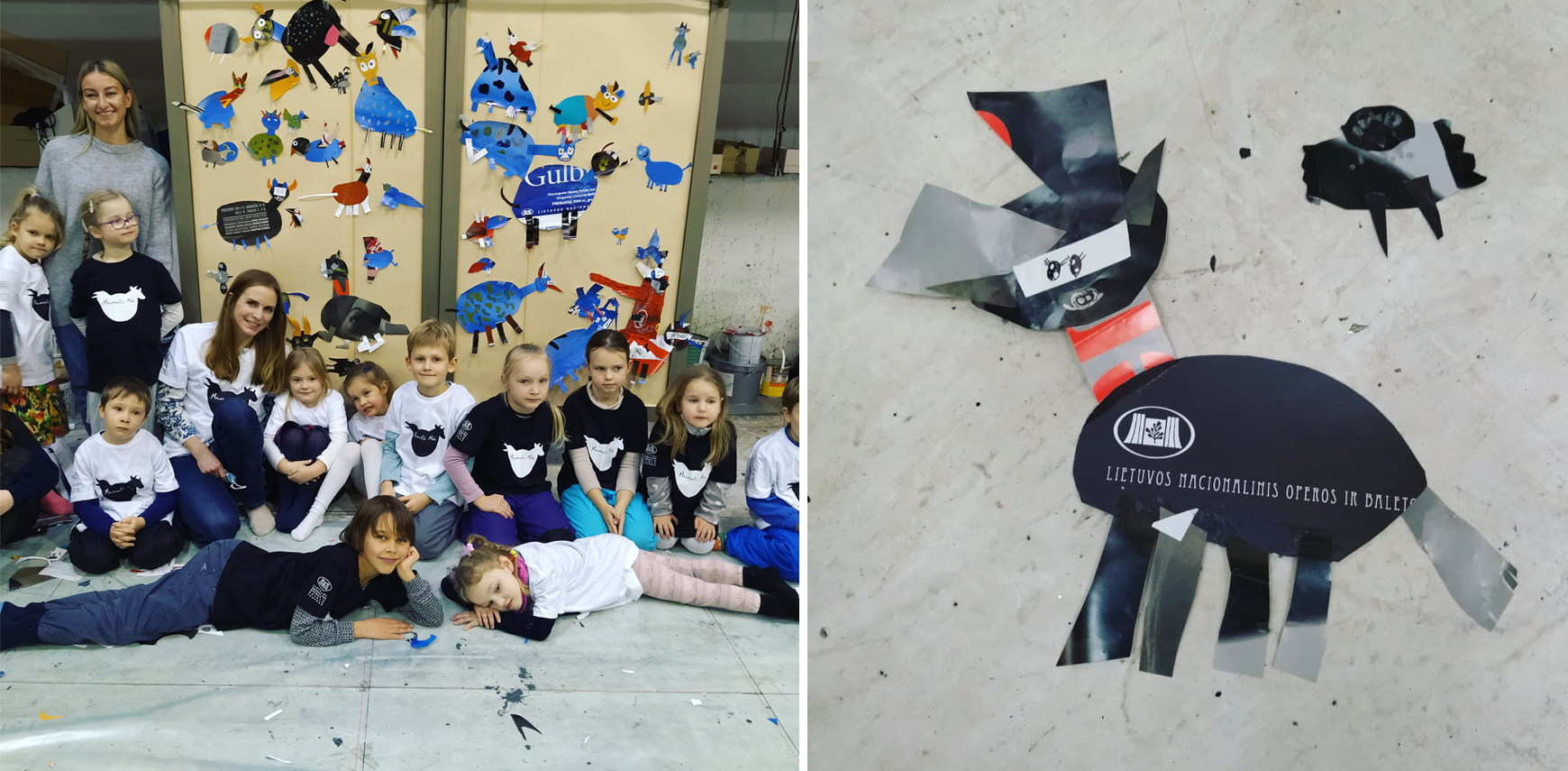 Lietuvos nacionalinis operos ir baleto teatras pakvietė mane pravesti vaikams kūrybines dirbtuves spektaklio „Mamulė MŪ” tema. Kūrybinėms dirbtuvėms buvo naudojami LNOBT anksčiau rodytų spektaklių užsilikę plakatai. Kartu su vaikais pažinome karvę, kirpome jos kūno dalis, matavome, dėliojome, klijavome ir prikūrėme visą pievą pačių nuostabiausių karvių. Nepamiršome ir svarbiausio karvės draugo- varnos!
