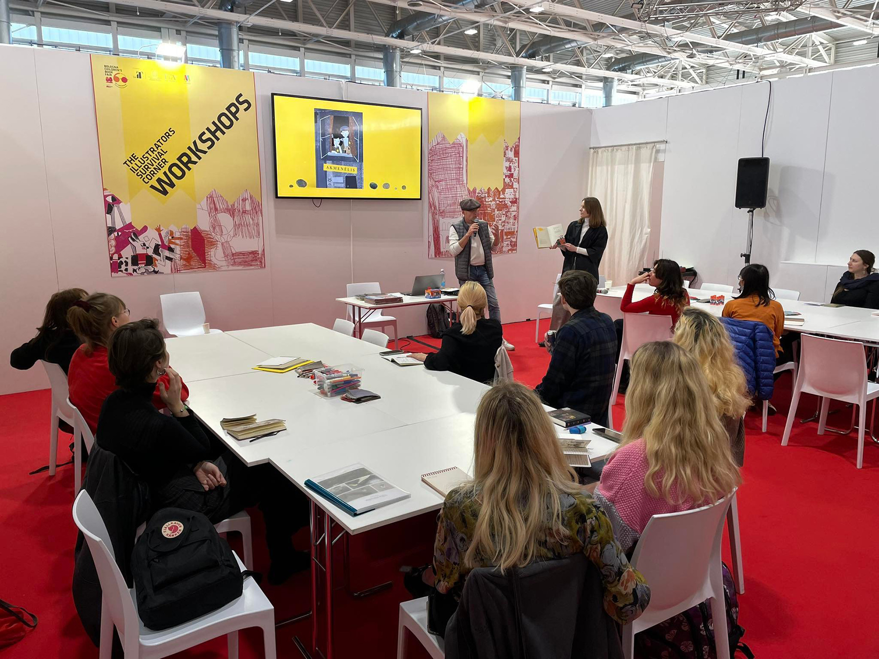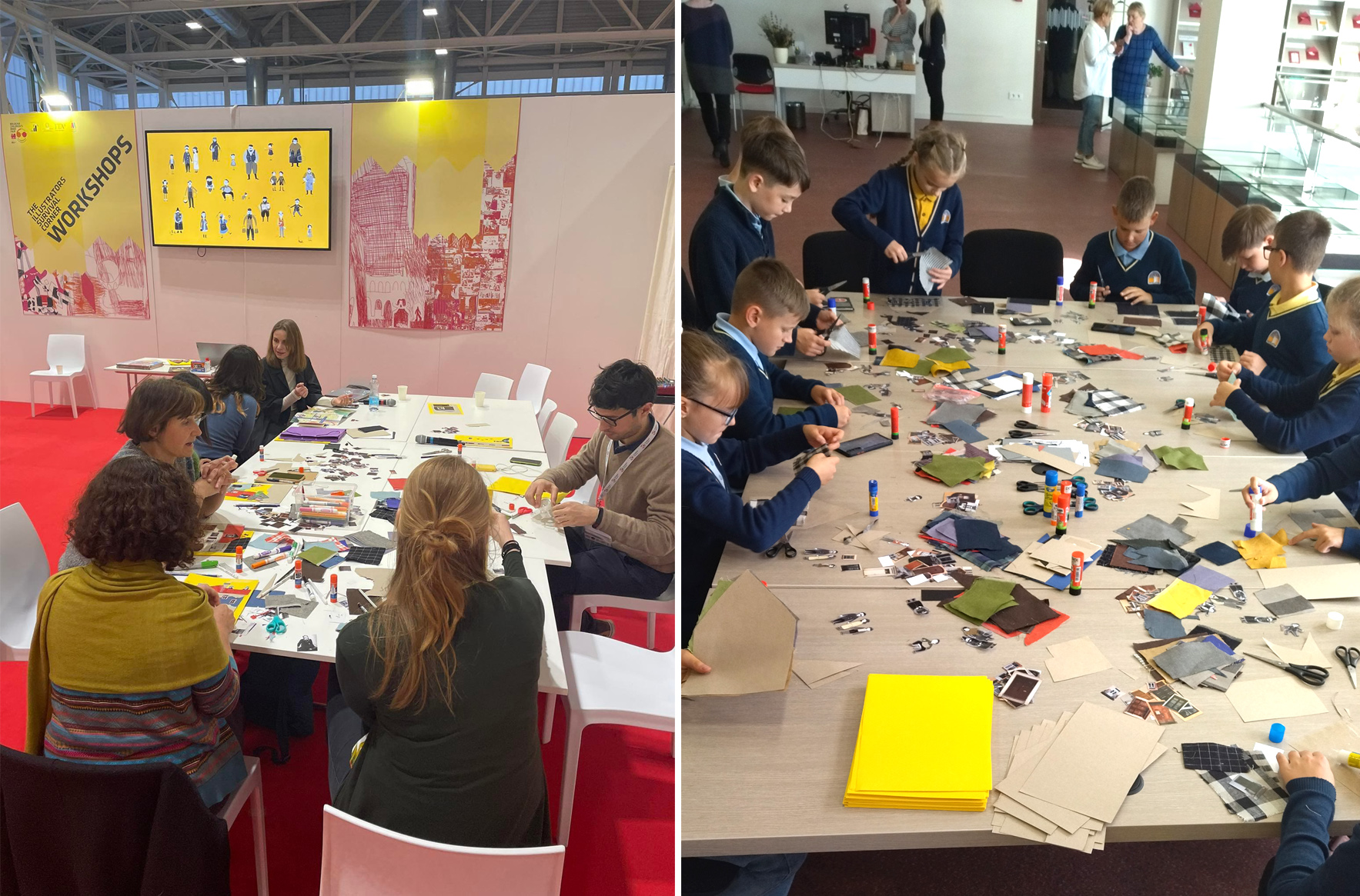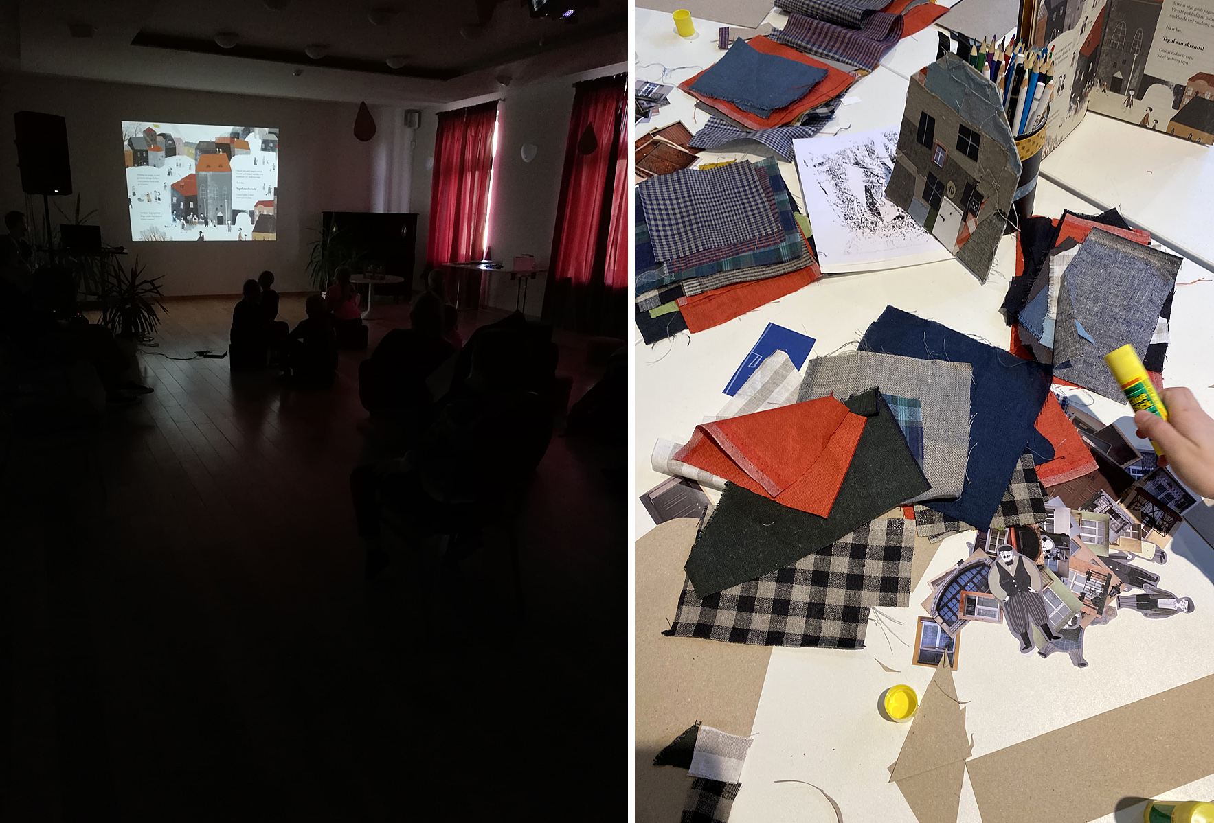 Before the workshop usually a talk about the city within the city (the ghetto area, life in the ghetto) and the process of creating the book. The story is illustrated with maps, photographs from Kaunas, Vilnius and other ghettos, sketches of illustrations and other visual material that reveals the behind-the-scenes of illustration.