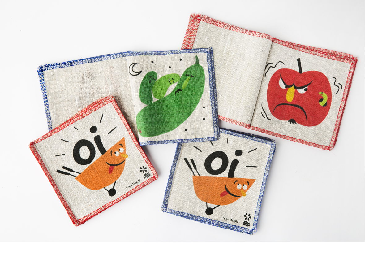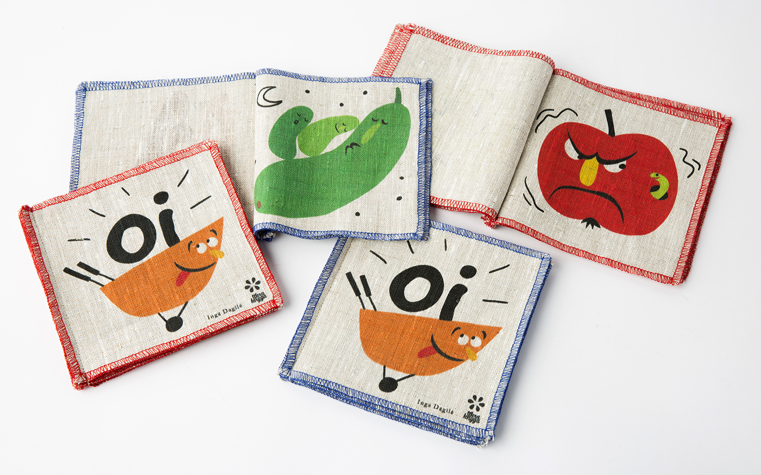 Vasarą, atostogaujant sukurta knyga, kurios niekas iš anksto nebuvo užsakę. Ji gimė pirmiausia mintyse, stebint savo mažuosius darže. Pasidalinau idėja su „Tikra knyga“ kūrybos vadove Daiva Rudyte, sulaukiau iš jos palaikymo ir viens du, nupiešiau iliustracijas. Tai knyga apie emocijas, spalvas ir skaičius. Norėjau, kad knygą būtų galima neštis į lauką, daržą, nebijoti ištepti, įsidėti į vaikišką krepšiuką, skalbti kartu su lėlėmis, pasiimti į smėlio dėžę, „skaityti“ su tėvais, patiems ar su žaislais. Popierius tam nebūtų tikęs. Spaudą ir susiuvimą užsakėme lino medžiagas dažančioje ir įvairius gaminius siuvančioje įmonėje. Buvo išleista ~15 egz. Kolekcionieriai, griebkite! 😀