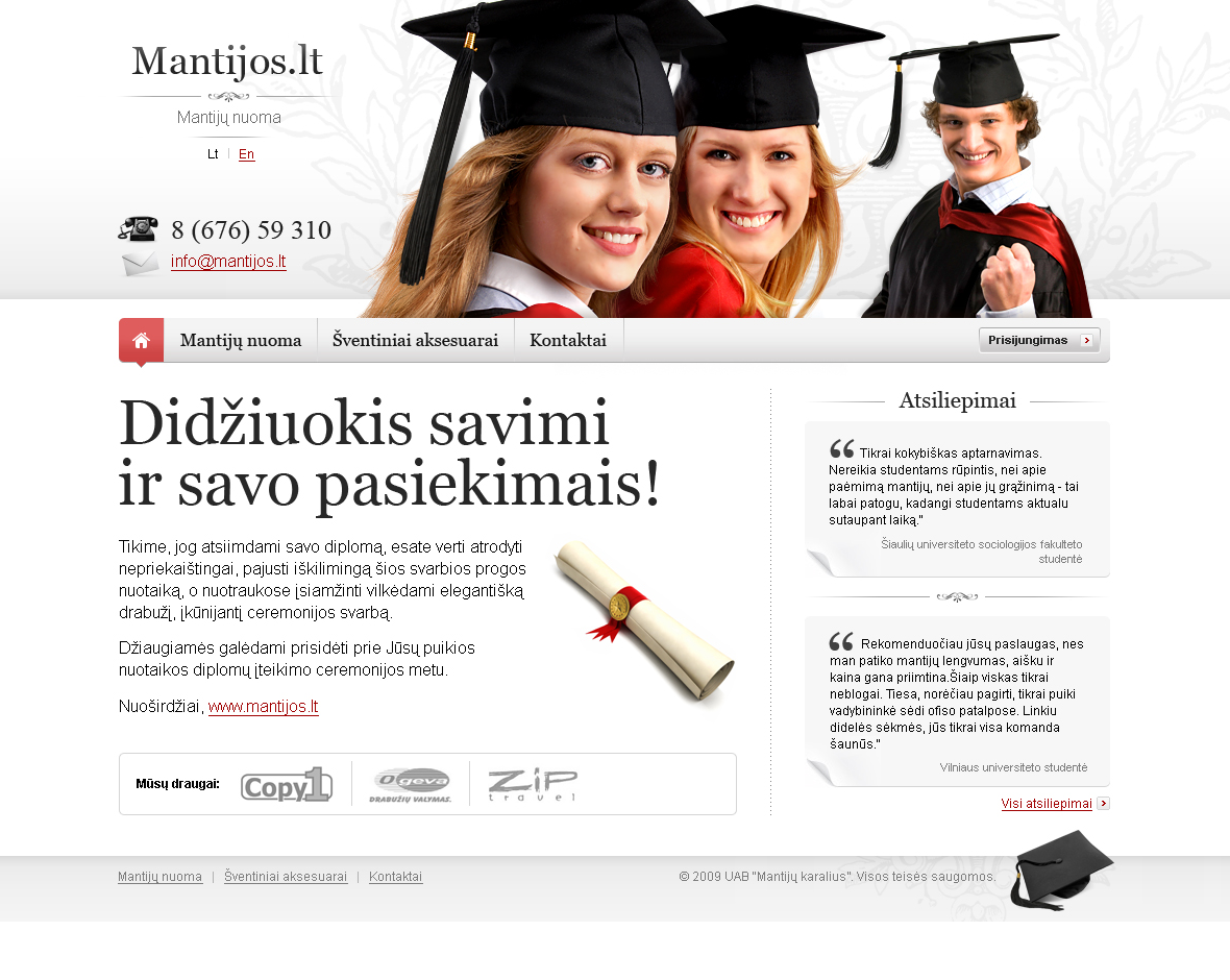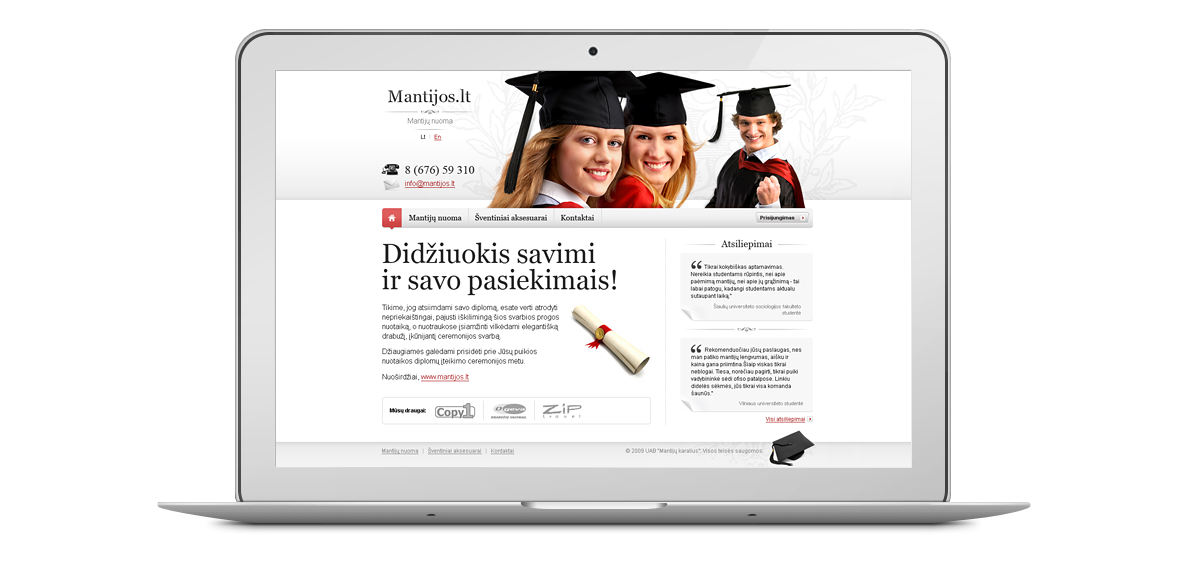 Project Details Skills: Computer Categories: Dizainas - Graphic design Date: 2010 Client: mantijos.lt Project Description Mantijos.lt – mantijų nuoma užsiimančios įmonės internetinė svetainė. Dizainas kurtas 2010 m. Related Works PreviousBack to listsNext